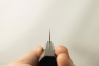 Gyuto: A general-purpose knife that most chefs would say they could not do without. This knife is the Japanese knife makers answer to the western chef knife. Gyuto translates to cow blade. They are generally tall at the heel, flat throughout, and rounded toward the tip of the knife for rock chopping. We use our gyuto for just about anything, from butchering certain fish, to brunoise veg, to cutting the cake. Any good chef will tell you to buy a quality Gyuto first, and build the the rest of your knife kit around it.