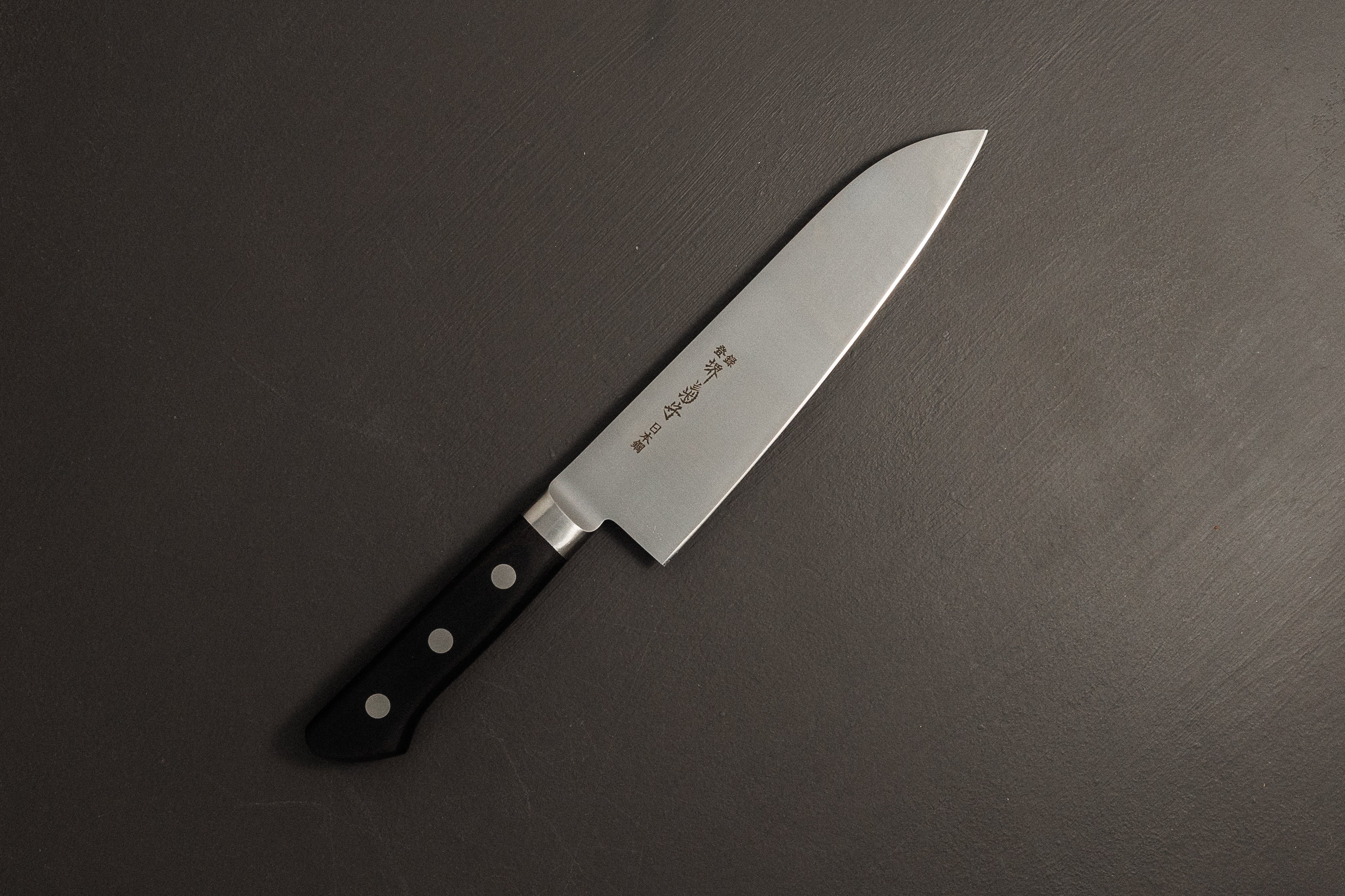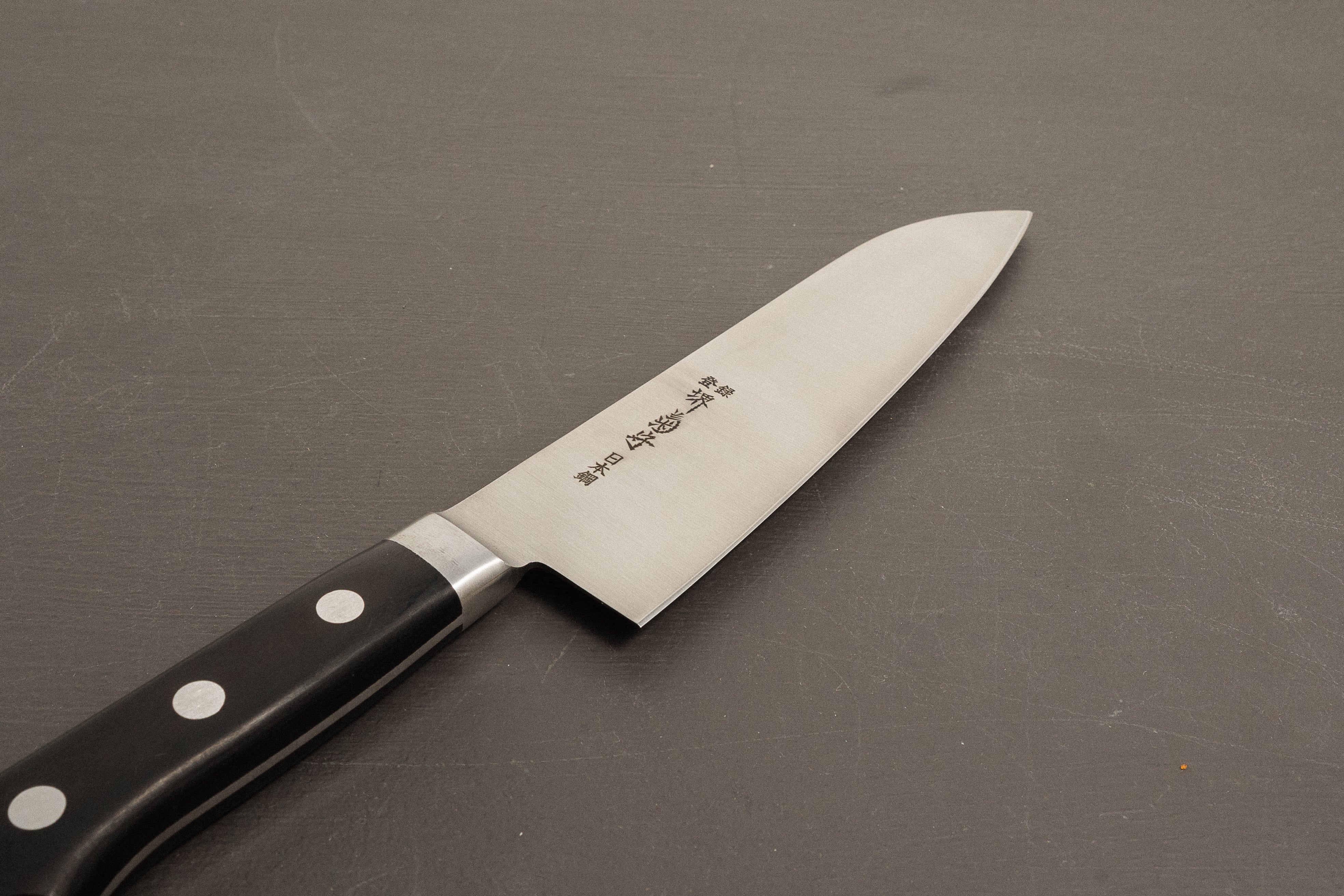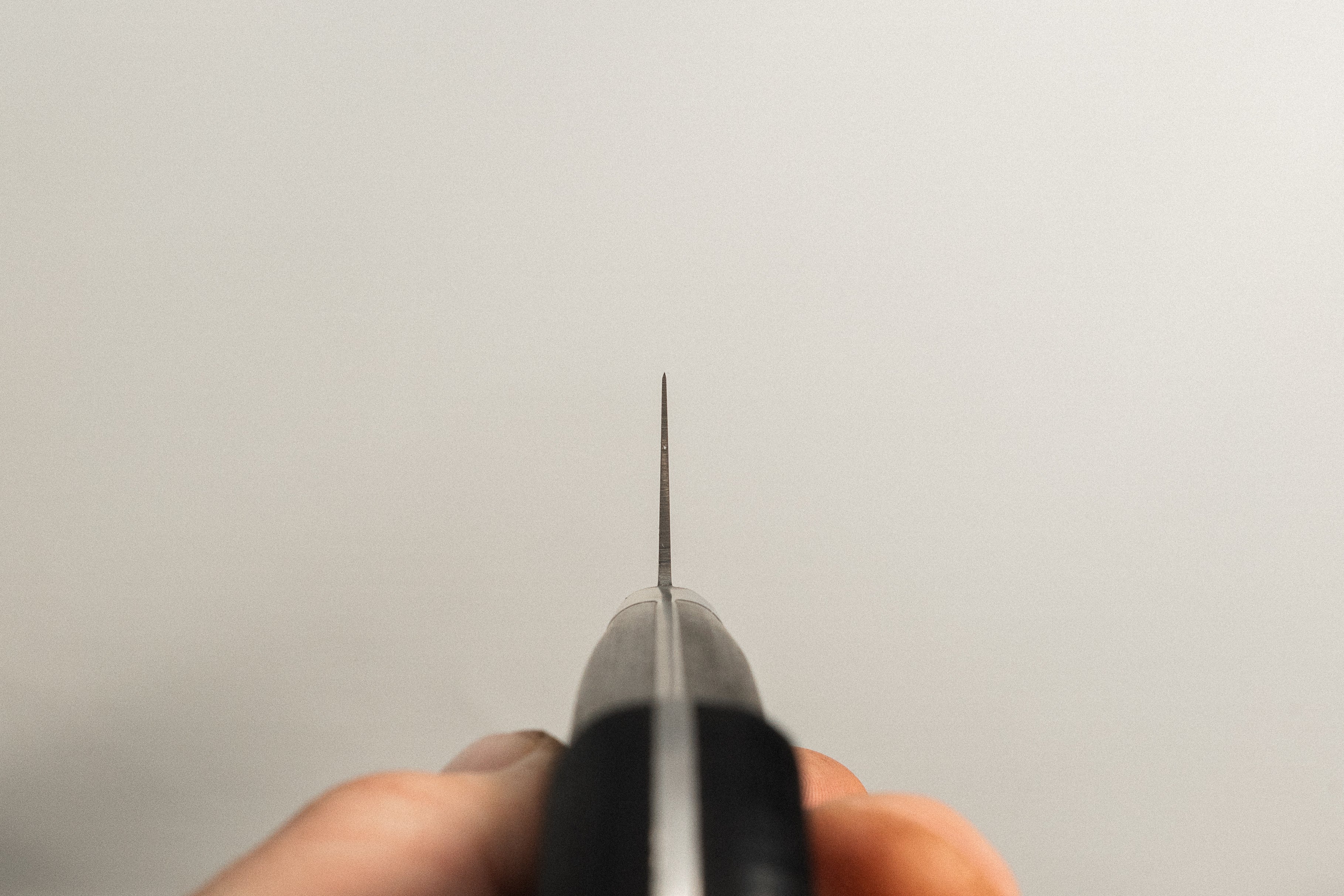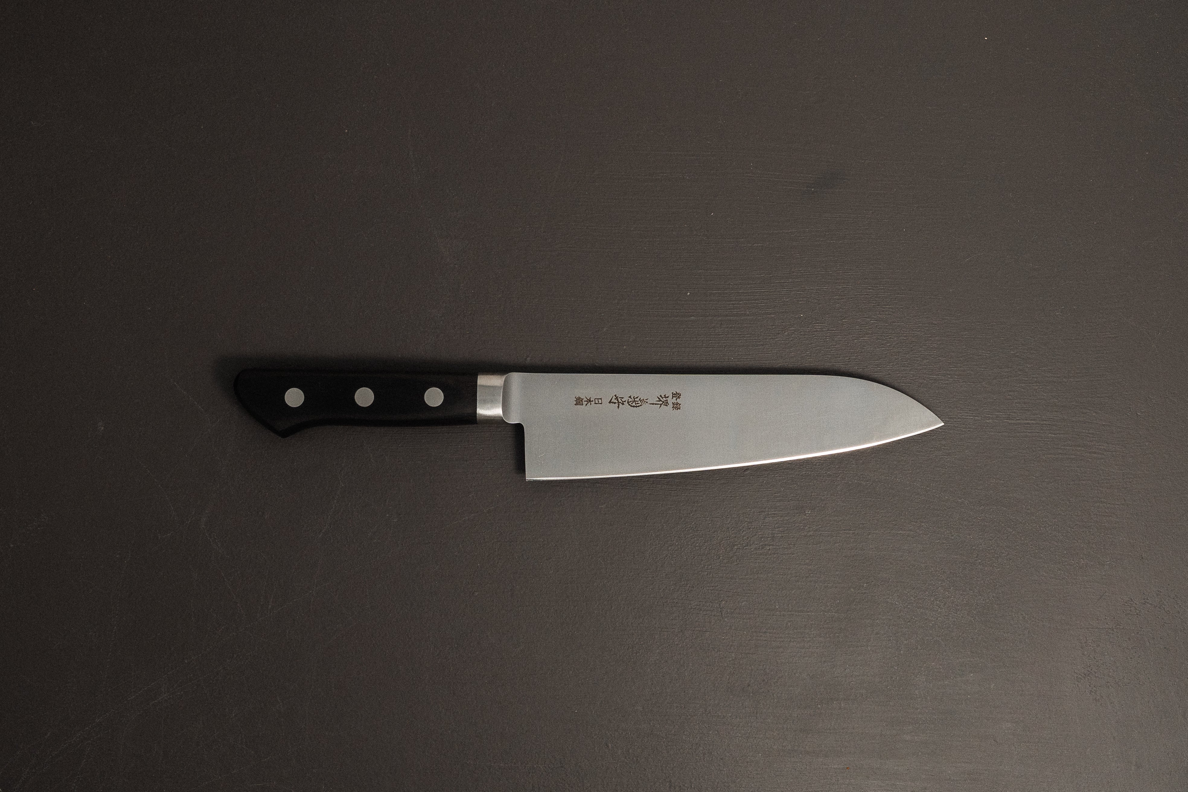 Gyuto: A general-purpose knife that most chefs would say they could not do without. This knife is the Japanese knife makers answer to the western “chef knife”. Gyuto translates to “cow blade”. They are generally tall at the heel, flat throughout, and rounded toward the tip of the knife for rock chopping. I would use my gyuto for just about anything, from butchering certain fish, to brunoise veg, to cutting the cake. Any good chef will tell you to buy a quality Gyuto first, and build the the rest of your knife kit around it.