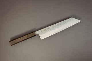 Kiritsuke: In a traditional Japanese kitchen, the kiritsuke is a single beveled knife reserved only for the head chef to use. Now it has become a popular 50/50 beveled all purpose knife that can replace the gyuto. Slice meat, chiffonade herbs, chop veg, this knife is a bad-ass alternative to the gyuto.