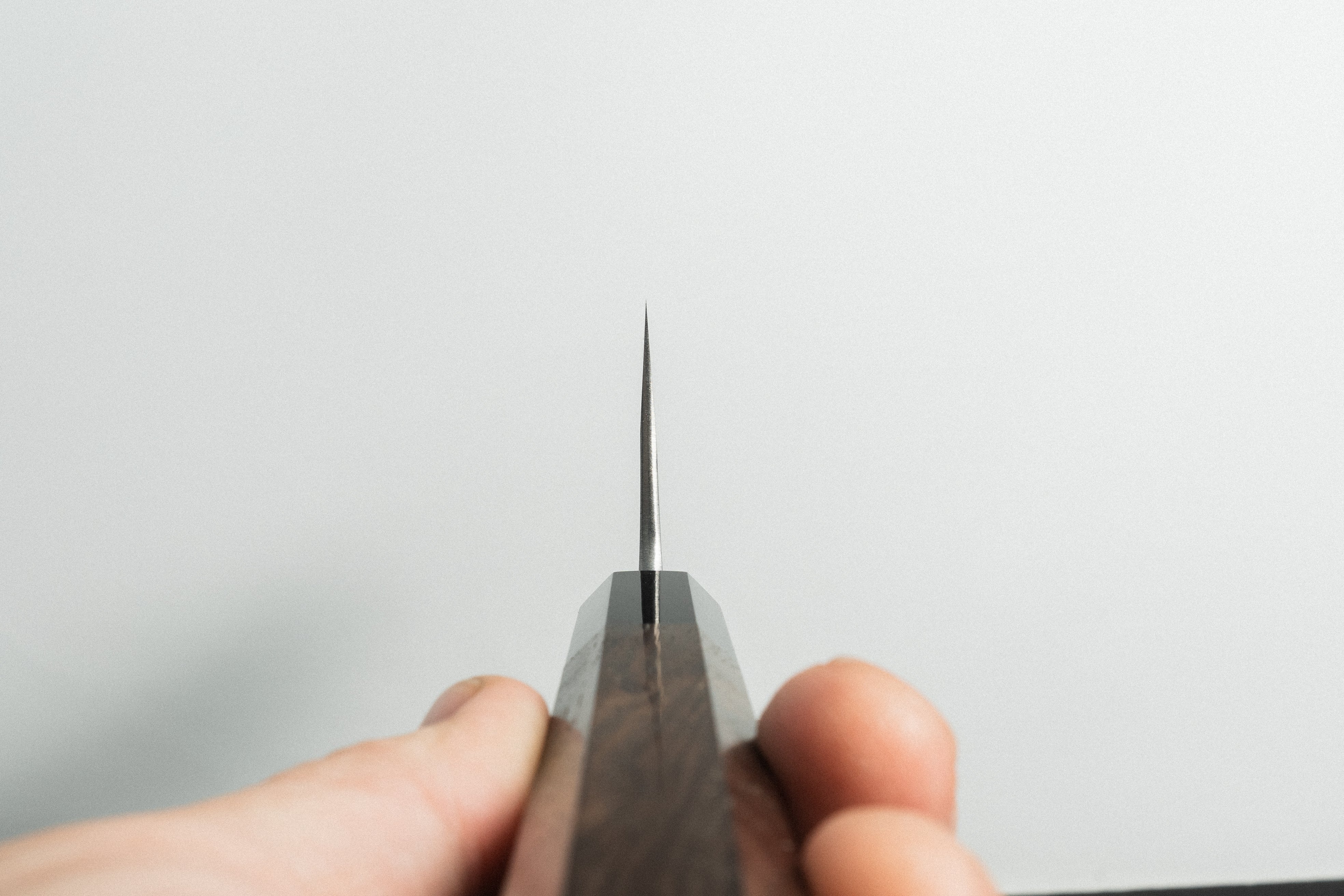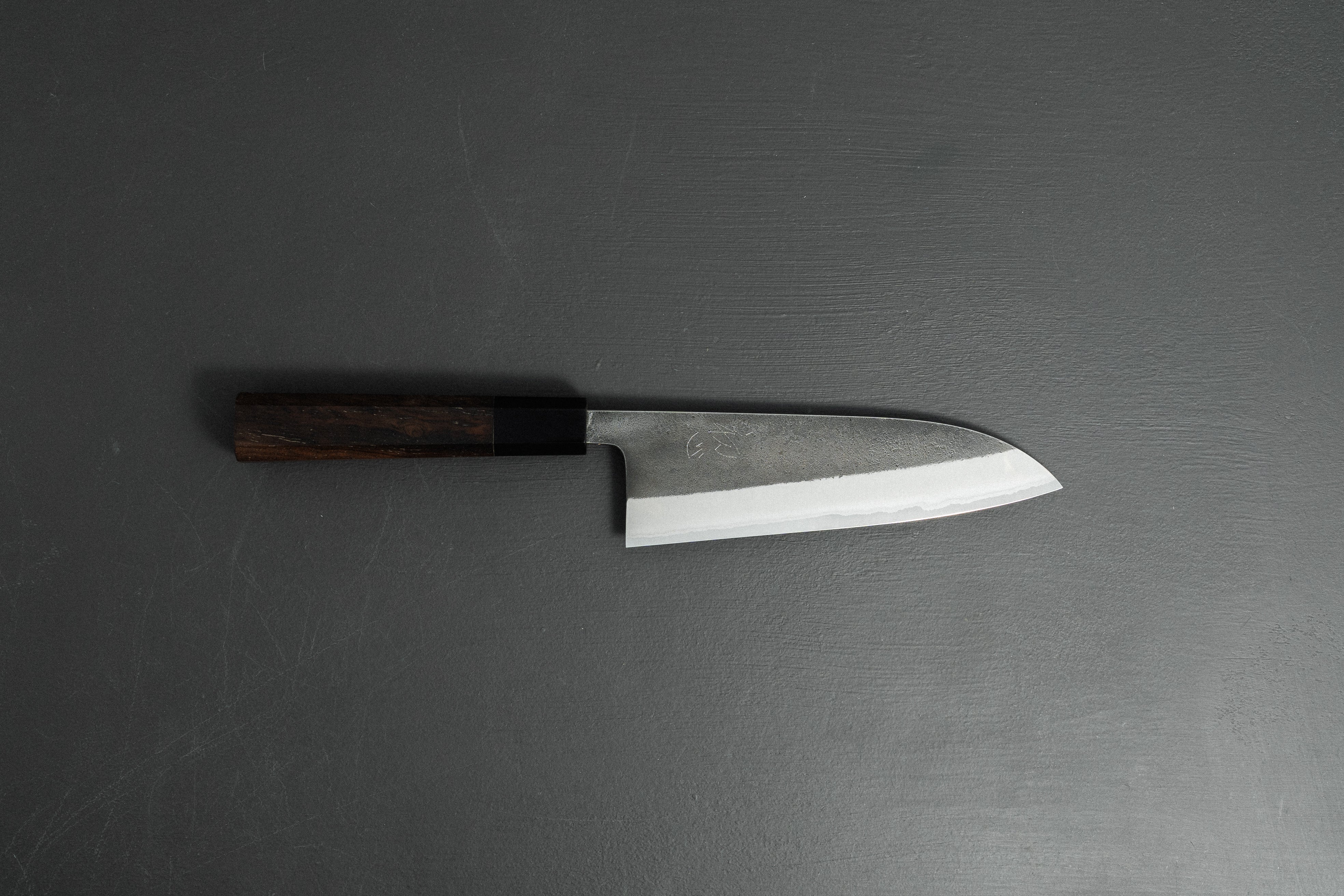 Santoku: A well-rounded knife that can accomplish a lot of cutting tasks. The santoku is the most common knife shape you’ll find in kitchens worldwide and it excels at slicing, dicing, and mincing. Think of it as a cross between a Gyuto (chef knife) and Nakiri (veg knife). Generally short in length, 160mm-190mm, the santoku is a superb knife if space is an issue.