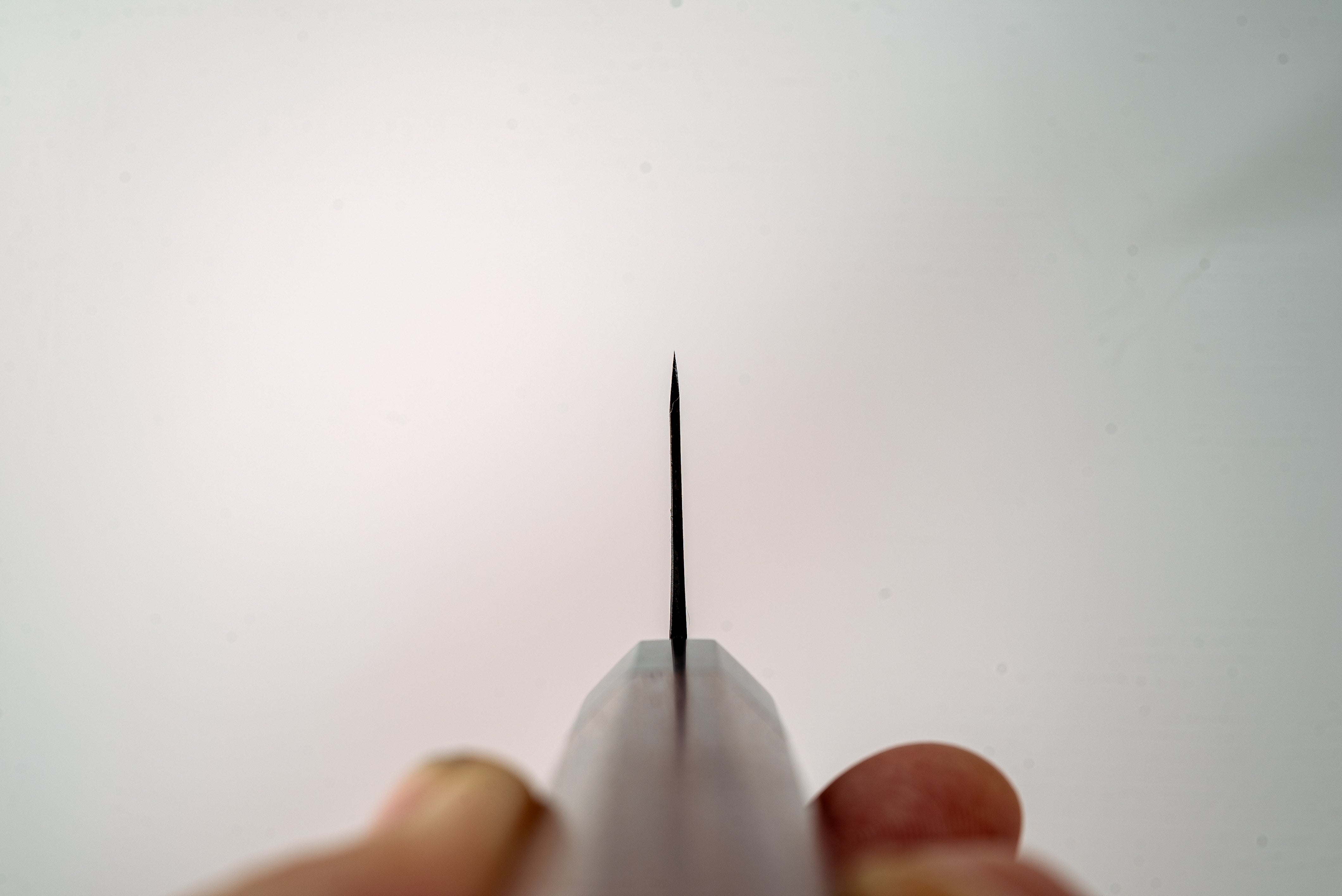 Gyuto: A general purpose knife that most chefs would say they could not do without, it is the Japanese knife makers answer to the western “chef knife”. Gyuto translates to “cow sword”. They are generally tall at the heel, flat throughout, and rounded toward the tip of the knife for rock chopping.