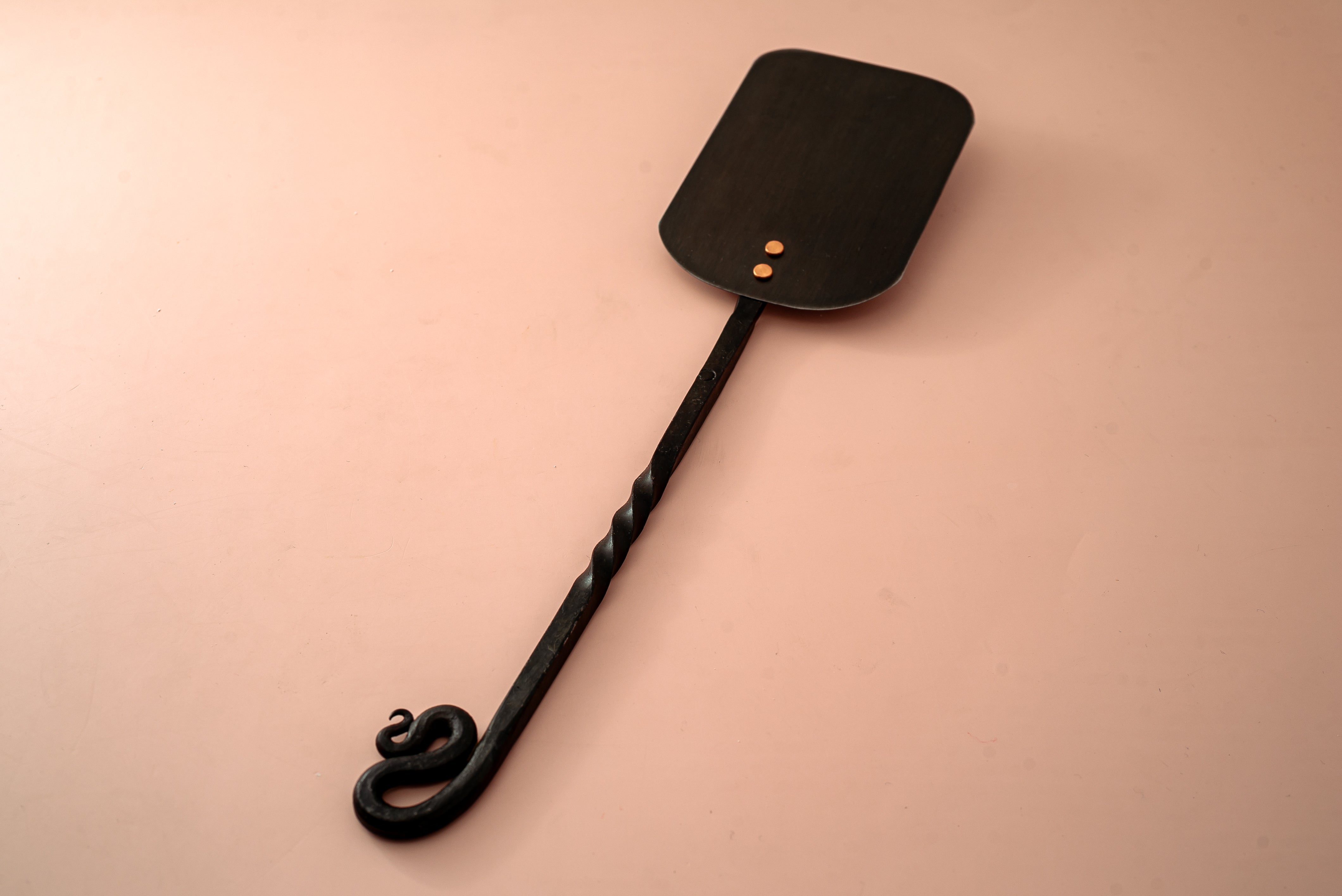 Serpent Tail Spatula hand forged by Crane Culinary using 1095 Spring steel and mild steel.