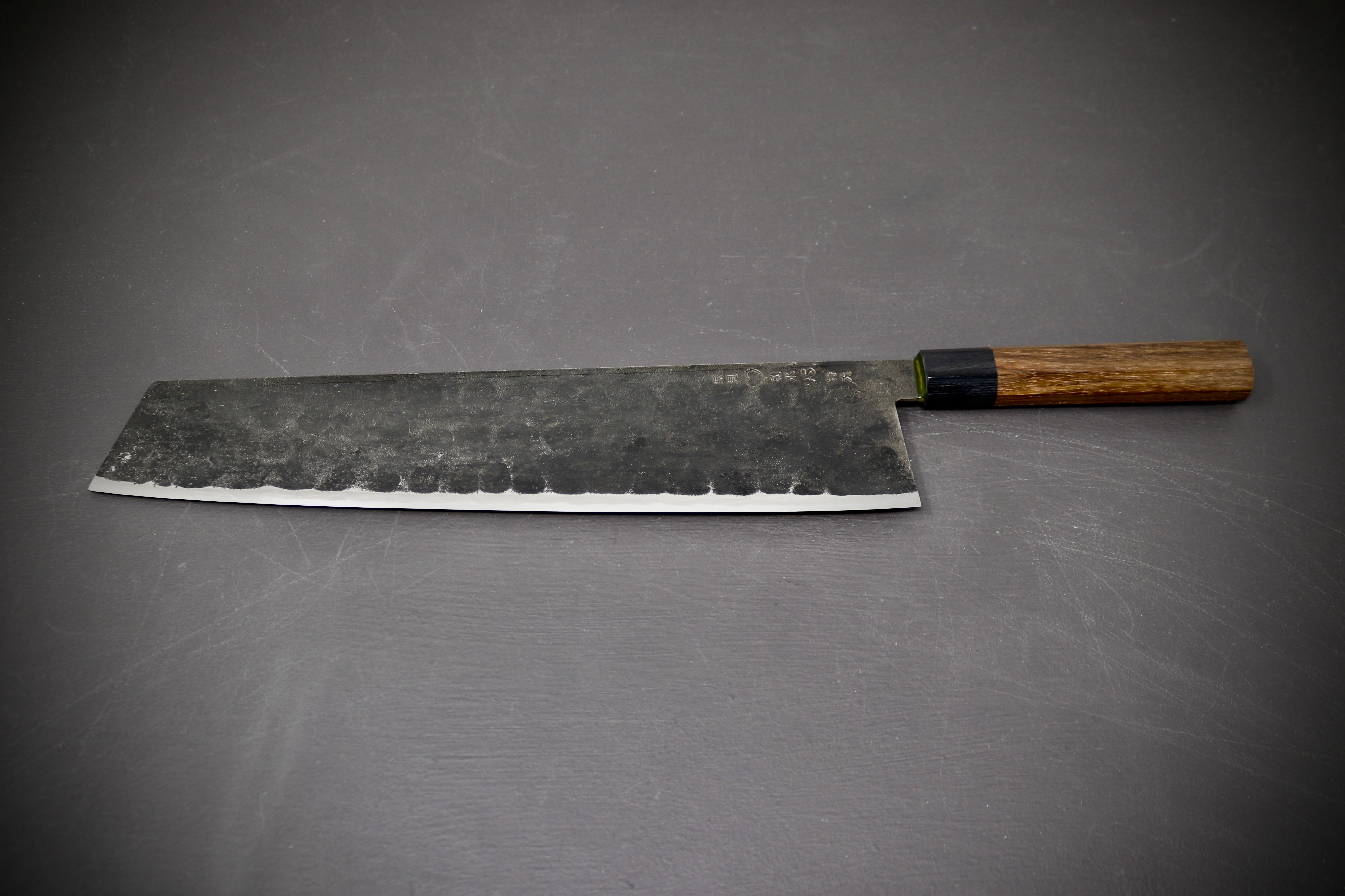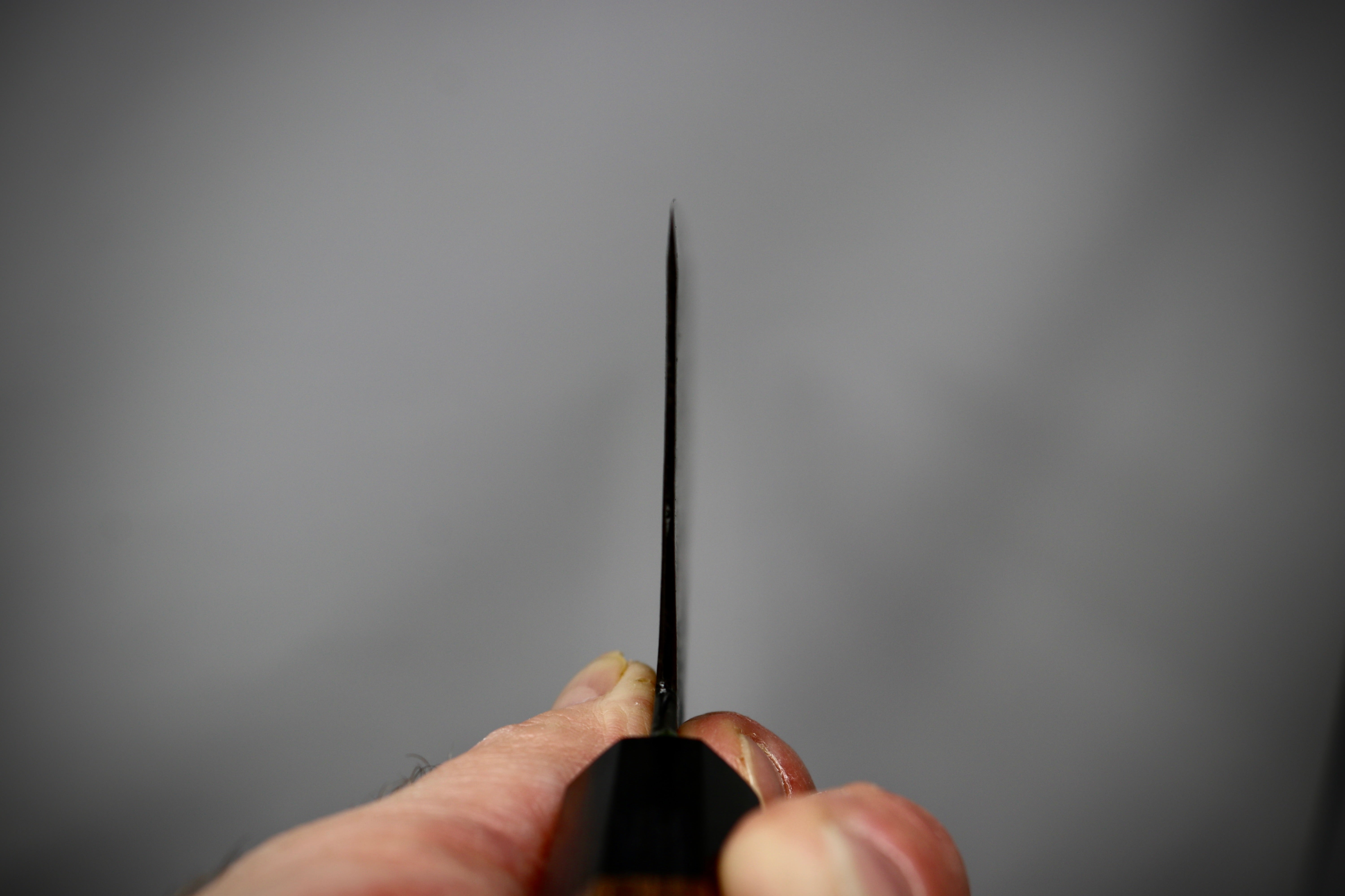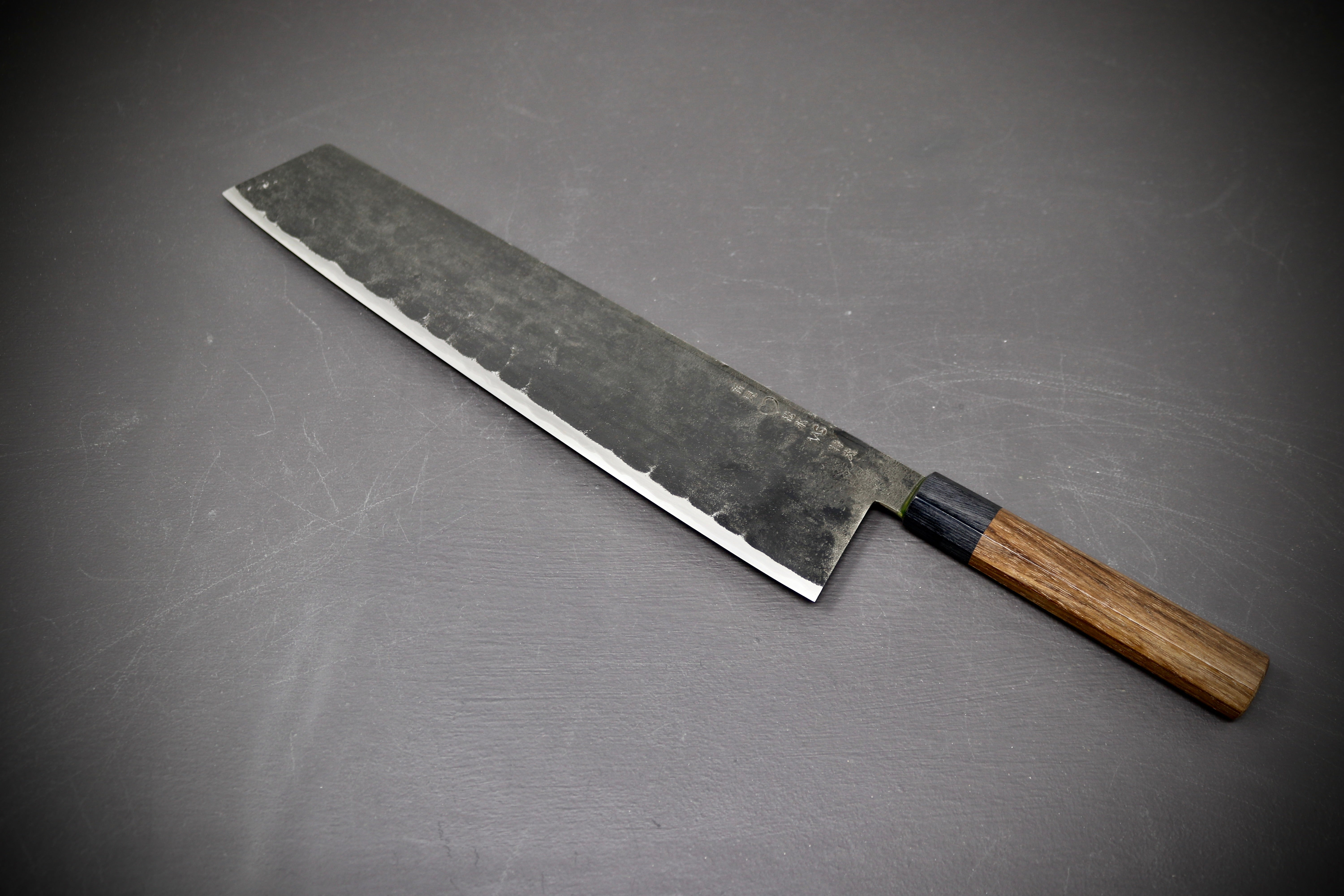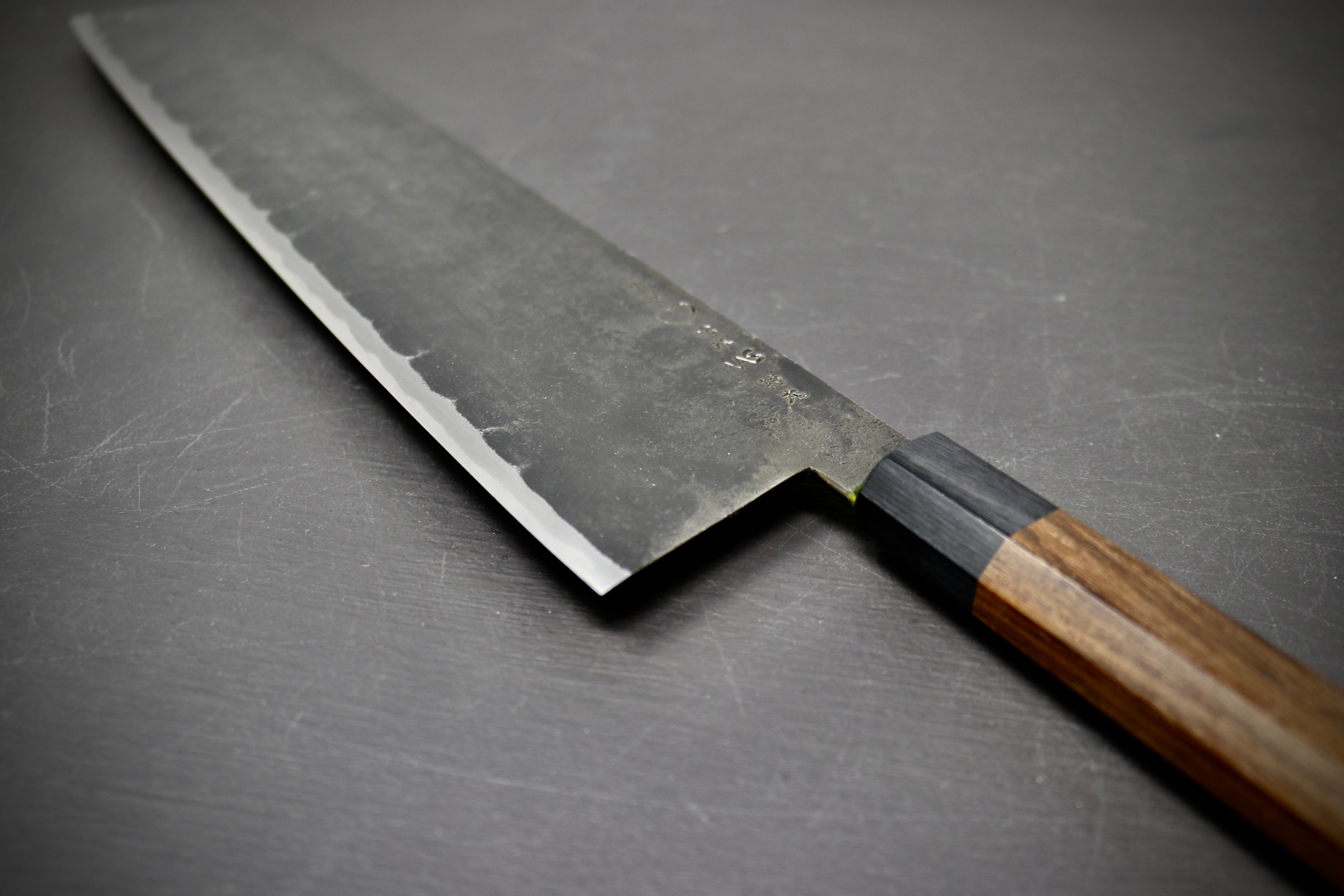 Kiritsuke: In a traditional Japanese kitchen, the kiritsuke is a single beveled knife reserved only for the head chef to use. Now it has become a popular 50/50 beveled all purpose knife that can replace the gyuto. Slice meat, chiffonade herbs, chop veg, this knife is a bad-ass alternative to the gyuto.
