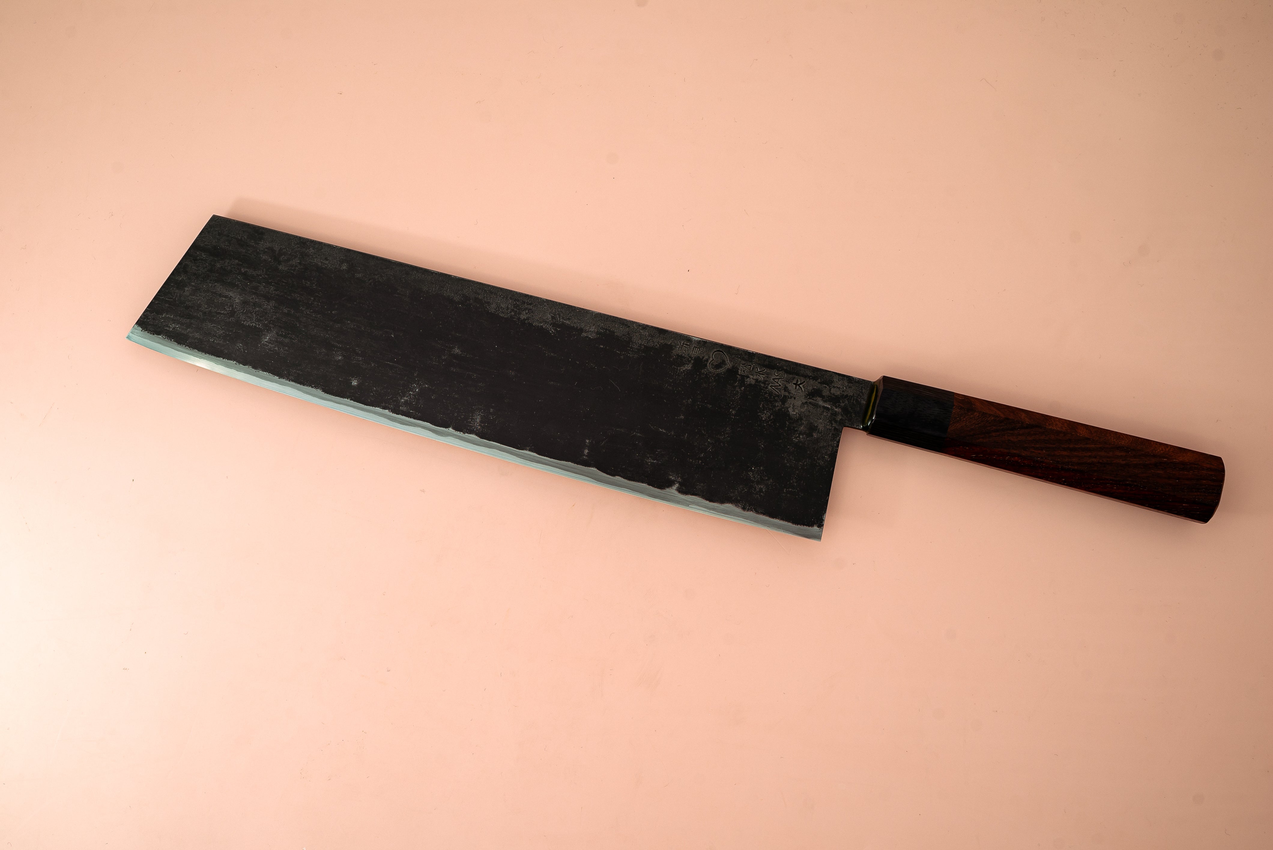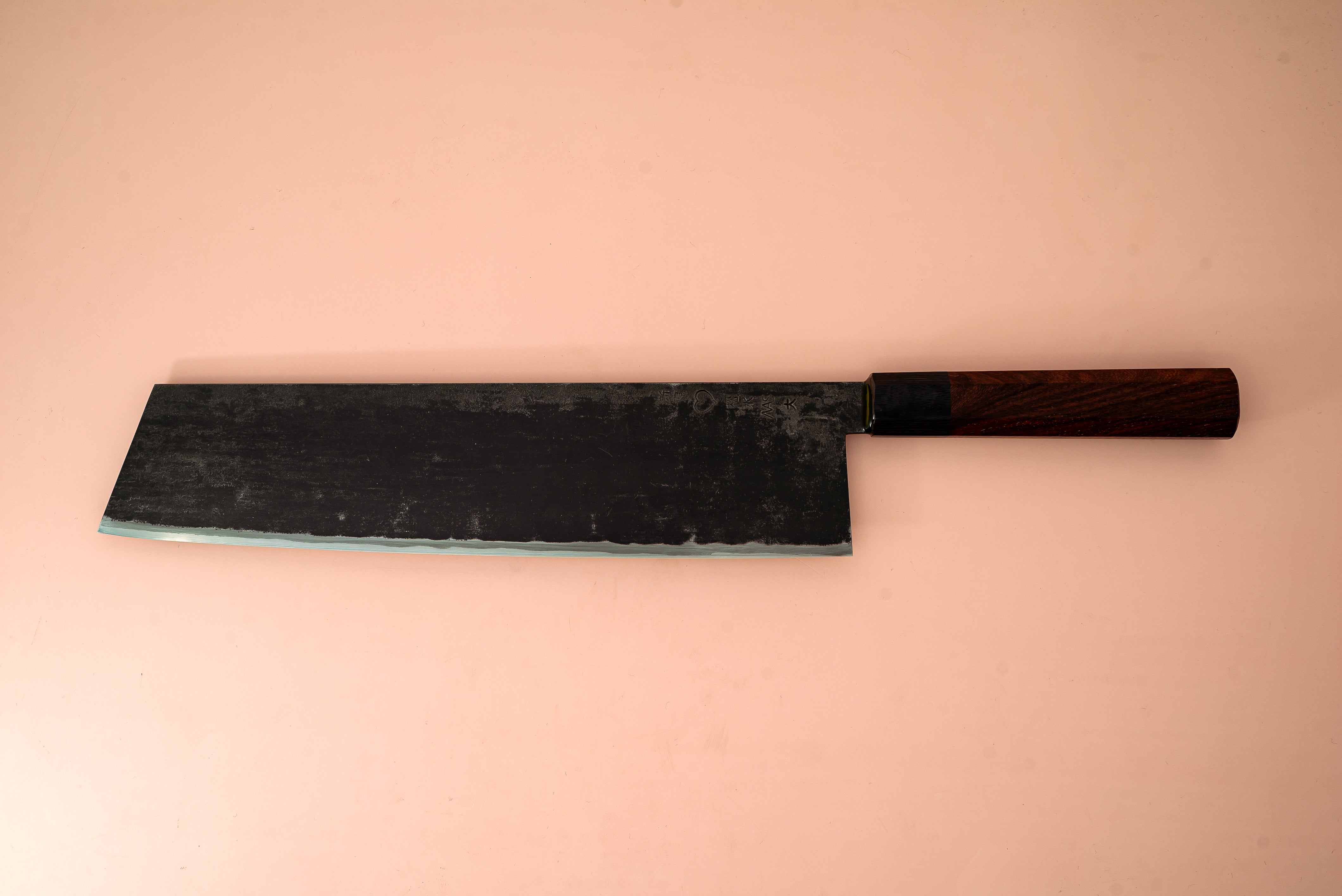 Kiritsuke: In a traditional Japanese kitchen, the kiritsuke is a single beveled knife reserved only for the head chef to use. Now it has become a popular 50/50 beveled all purpose knife that can replace the gyuto. Slice meat, chiffonade herbs, chop veg, this knife is a bad-ass alternative to the gyuto.
